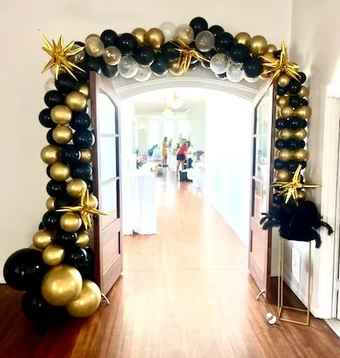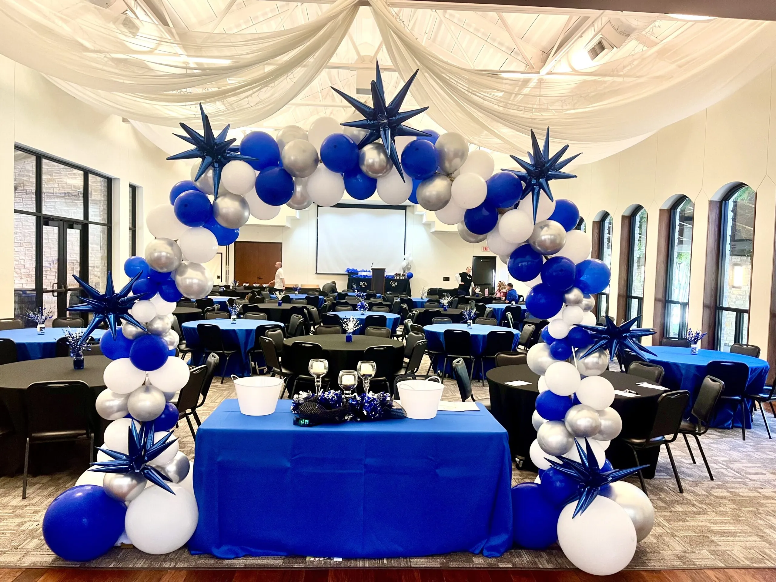 Professional event styling featuring custom arches, columns, and organic balloon displays tailored to your party’s theme.