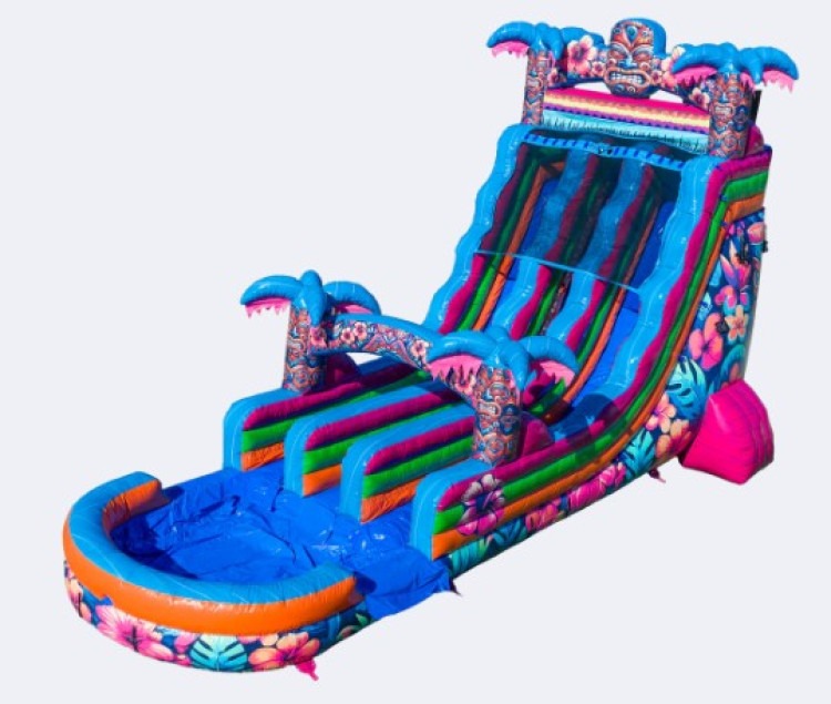 Rent this slide when you want an eye-catching centerpiece that combines tropical style with head-to-head excitement and plenty of cooling fun for hot days.